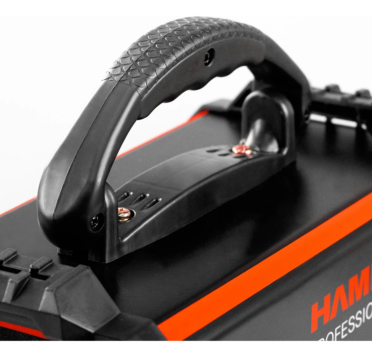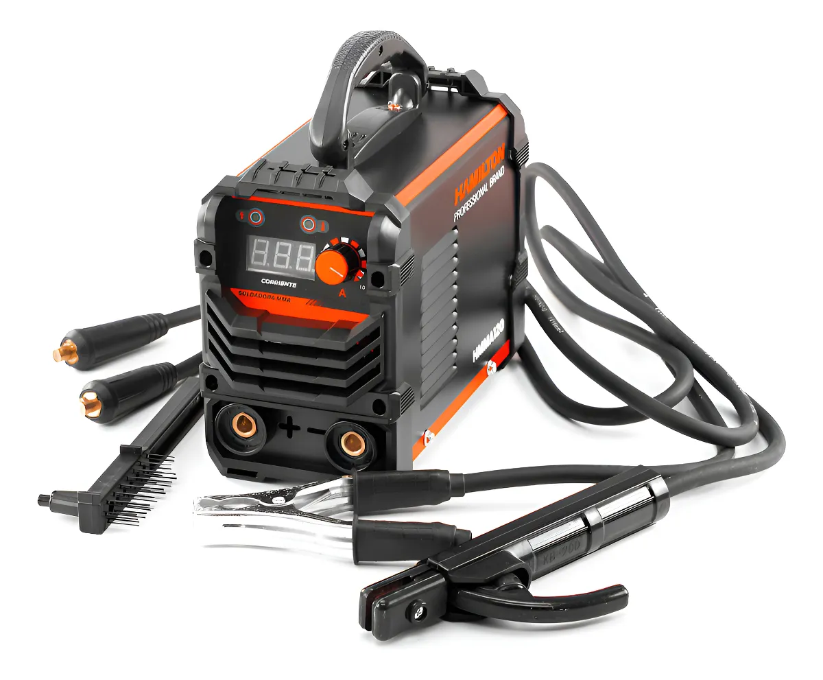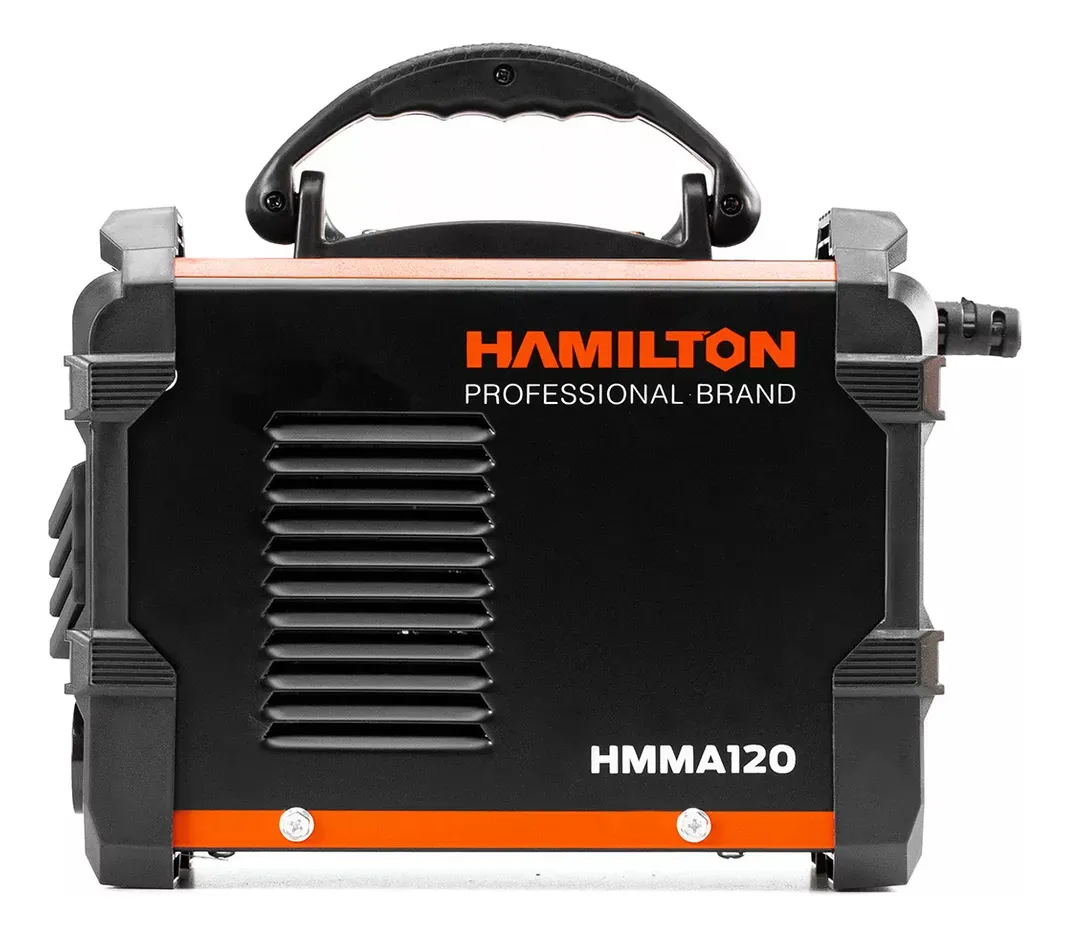 Soldadora Inverter Hamilton HMMA120 – 120 A (MMA Anti-Stick) con tecnología inverter IGBT, pantalla digital y función antiadherente. Compacta, eficiente y segura para soldar acero e hierro con precisión profesional.